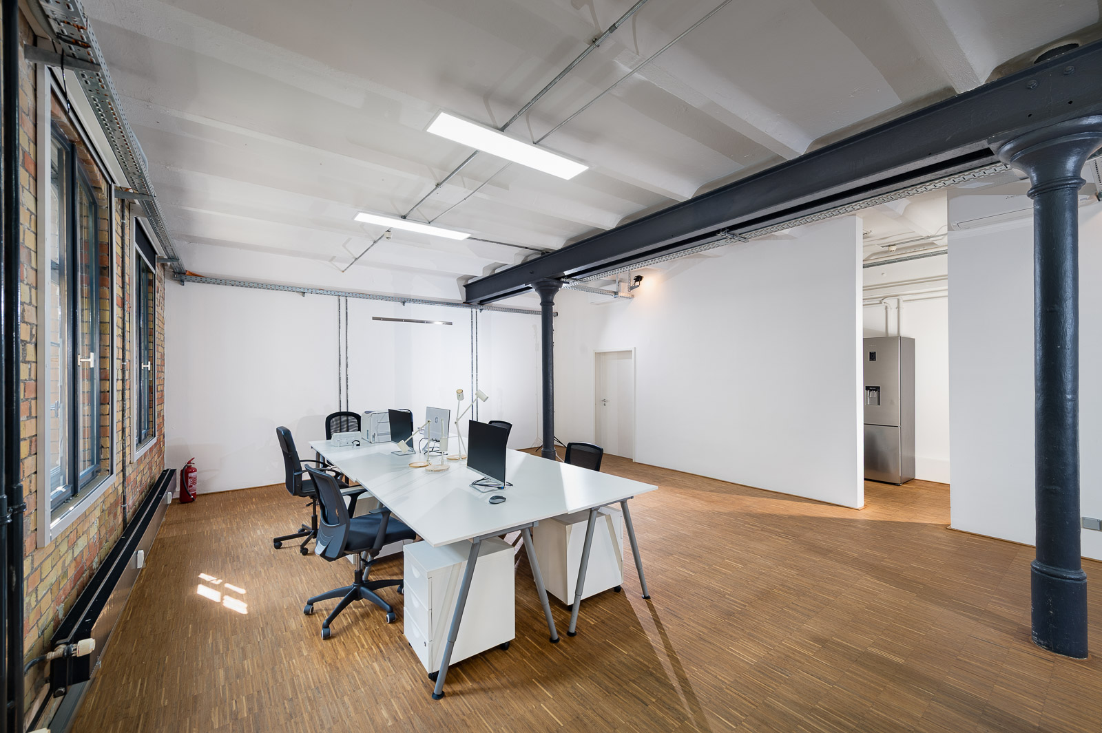 Dieses moderne Loft im 1. Obergeschoss umfasst eine Gesamtfläche von ca. 225 m². Die Fläche kombiniert einen großzügigen, offen gestalteten Arbeitsbereich mit zusätzlichen separaten Räumen, die sich flexibel als Rückzugs- oder Besprechungszonen nutzen lassen. So entsteht ein ausgewogenes Raumkonzept, das sowohl kommunikatives, teamorientiertes Arbeiten als auch konzentrierte Einzelarbeit optimal unterstützt.