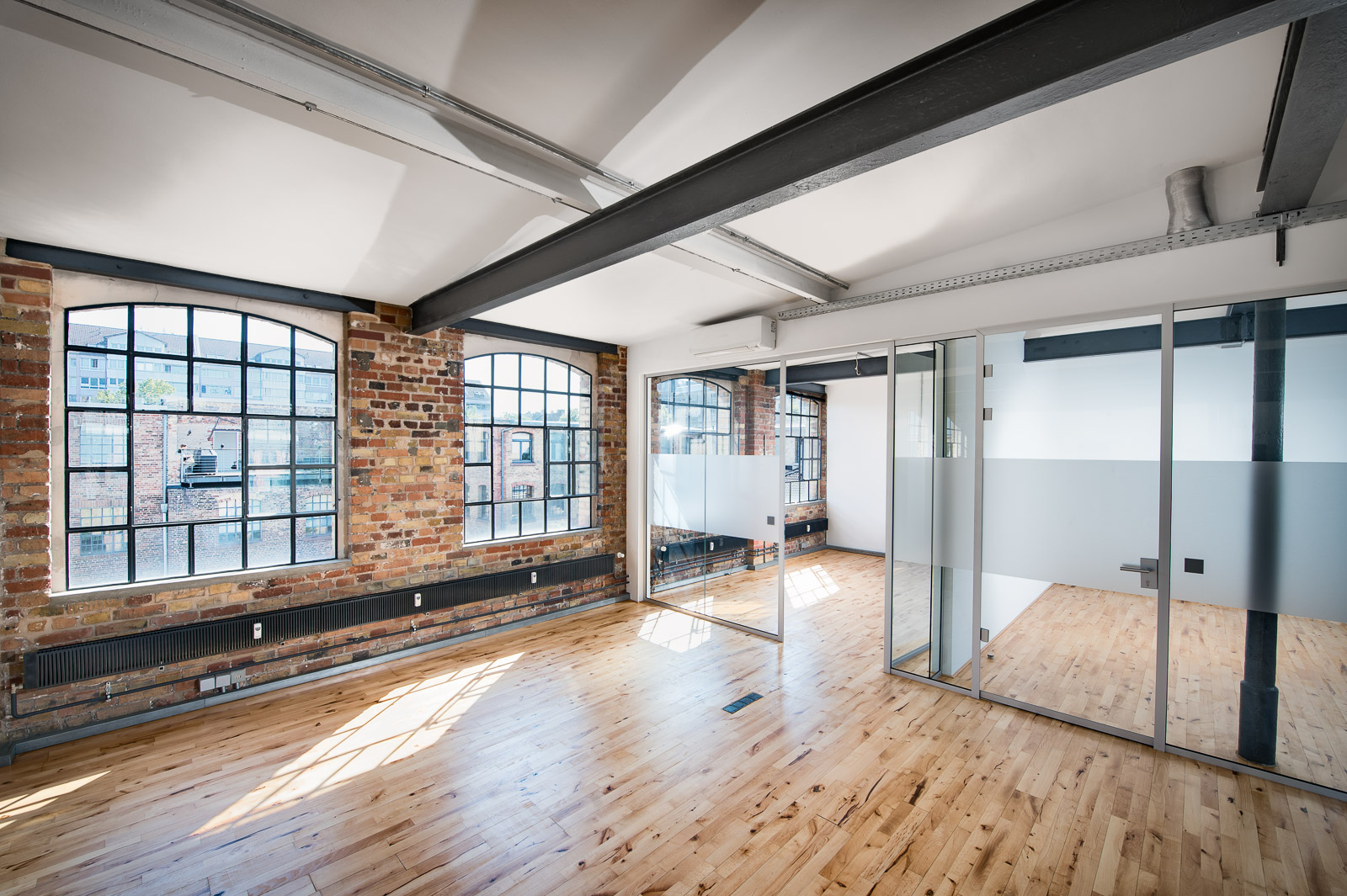 Die Gesamtgröße dieses modernen Lofts beträgt ca. 196 m². Die Fläche befindet sich im 2. Obergeschoss und kombiniert eine großzügige Haupteinheit mit zwei durch Glaswände abgetrennten Bereichen. Die Raumstruktur ermöglicht sowohl großzügiges Arbeiten im offenen Bereich als auch konzentriertes Arbeiten in separaten Räumen. Es handelt sich um eine sehr hochwertig ausgebaute Mieteinheit, die für die Nutzung als Büro, aber auch für die Nutzung eines Showrooms geeignet ist.